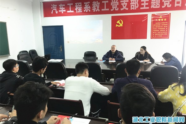 (通讯员 赵锐)为提高员工党员的政治素养和工作能力,进一步发挥员工党员在顶岗实习中的先锋模范带头作用,汽车工程系员工党支部于10月26日上午在5508教室举行十月份主题党日活动,活动由员工党支部书记柳海涛主持。