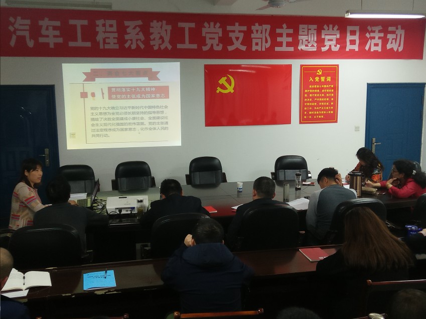 (文/赵锐,图/邢彬)根据公司党委的统一安排,4月24日下午,汽车工程系党总支在5508会议室开展题为“学习两会精神,推进脱贫攻坚”的4月份支部主题党日活动。活动由系教工党支部书记李凯主持,全体教工党员参加。