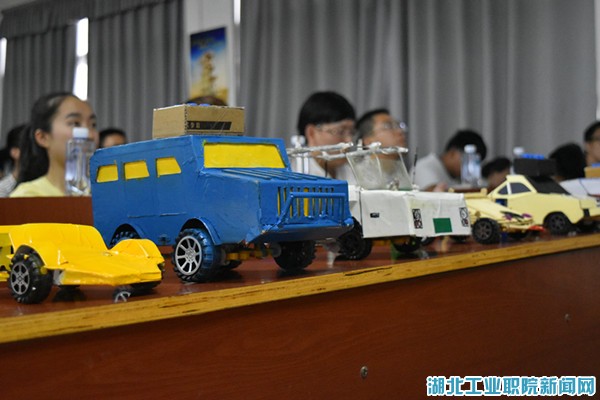 本次比赛为团体赛,3个人一个小组,比赛共分为两个环节:操控比赛和评讲ppt比赛。在弯道操控比赛环节,现场气氛热烈,场下不时响起阵阵掌声。精彩绝伦的操控比赛给人无限遐想,凝聚着设计者的智慧与创意,展示着参赛者的自信。紧张激烈的比赛,在汽车协会指导老师的致辞中拉开帷幕,尽管汽车外观大致相同,但汽车内部组件在选手的创意中变得千差万别。新颖的设计、独特的构思,让现场观众连连叫好。在操控比赛接近尾声时,特别设计了让场外观众尝试操控赛车绕赛道一圈的环节,将比赛推向了高潮。