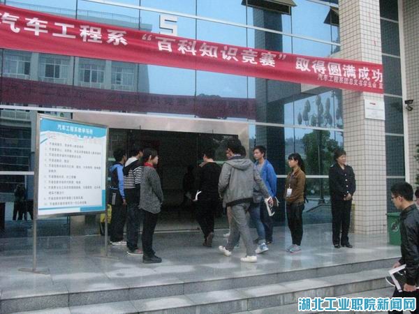 为了维护教学场所的环境卫生,提高员工的自身素质,自10月8日起,汽车工程系安排员工会干部每天早上7:20至8:00时间段,在教学楼门口进行站岗执勤。执勤的主要任务是提醒员工注意自己的行为规范,及时制止员工将早餐和零食带入教学楼。