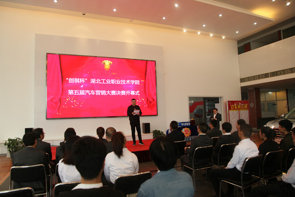 新闻网讯(通讯员 张仲颖)10月20日上午,伟德国际victor1946第五届汽车营销技能大赛决赛在十堰市创祺汽车销售有限公司圆满落幕。十堰创祺4S店总经理卢志强、伟德国际victor1946经理张健、党总支书记张玲、相关教师以及进入决赛的选手参加了此次活动。