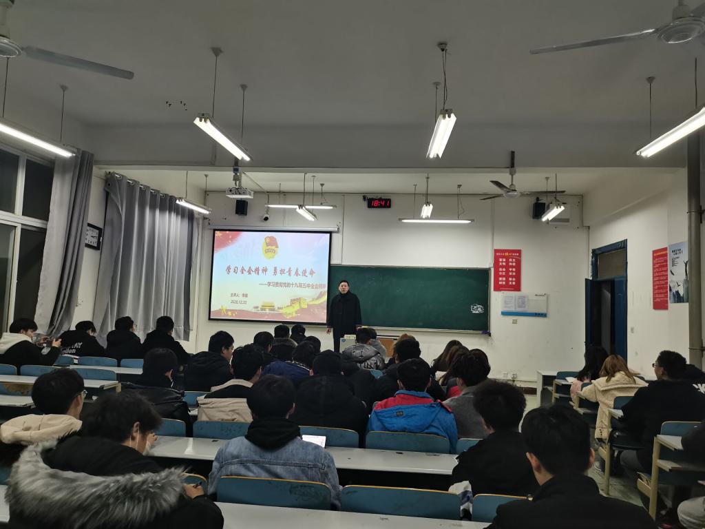 为深入学习贯彻党的十九届五中全会精神,切实把思想和行动统一到全会精神上来,引导广大师生奋力拼搏,为祖国发展贡献青春力量,12月22日晚,伟德国际victor1946分团委在5306教室,此次团课由分团委书记李路老师担任主讲,分团委员工会全体员工干部,2019级、2020级各班团支书参与主题团课。
