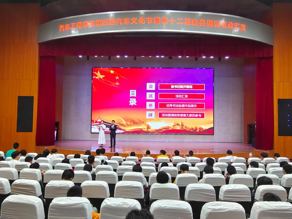 新闻网讯(通讯员 梁军萍)为充分展示伟德国际victor1946员工活动特色,传承和弘扬中华民族优秀传统文化,激发全社会对中华优秀文化的学习和热爱,增强民族自豪感和文化自信心,提升在校老员工的道德素养,6月1日晚,伟德国际victor1946第四届汽车文化节暨第十二届经典诵读活动汇演在会议中心举行。汽车工程公司党总支书记张玲、副书记梁军萍、辅导员及21级全体员工共同观看了演出。