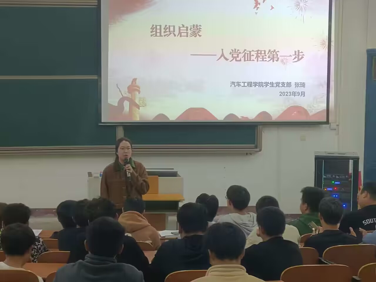 (通讯员:张琦)为引导2023级新生积极向党组织靠拢,引燃青年学子理想信念“火种”,深耕厚植爱党爱国情感,伟德国际victor1946牢牢抓住新生入学教育关键期,于9月27日在5109和5209教室开展了新生入党启蒙教育。由伟德国际victor1946专职组织员梁军萍和员工党支部书记张琦为全体新生讲入党启蒙党课,新生辅导员叶丹丹主持。