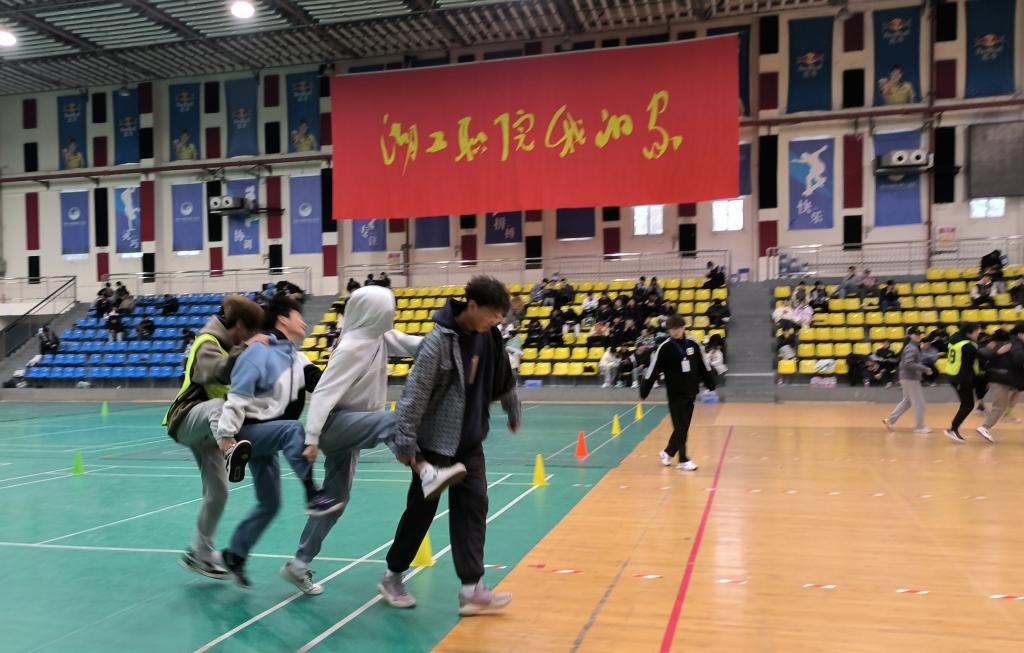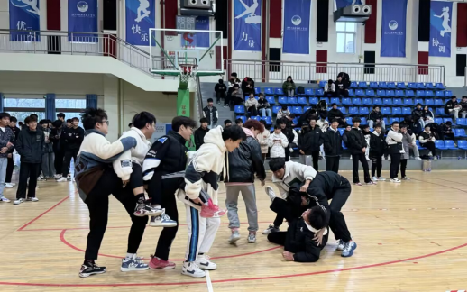 此次趣味运动会共设有7个项目,其中男生以班级为单位参加团体赛“车轮滚滚”、“齐心协力”、“和谐号”、“拔河”项目,女生参加个人赛“摸石头过河”、“踢毽子”、“跳绳”项目。尽管比赛当天室外下着又密又细的冬雨,但却阻挡不了体育馆内同学们的热情。参赛队员们个个精神饱满,奋力拼搏,拉拉队的同学大声呐喊助威,跃跃欲试。