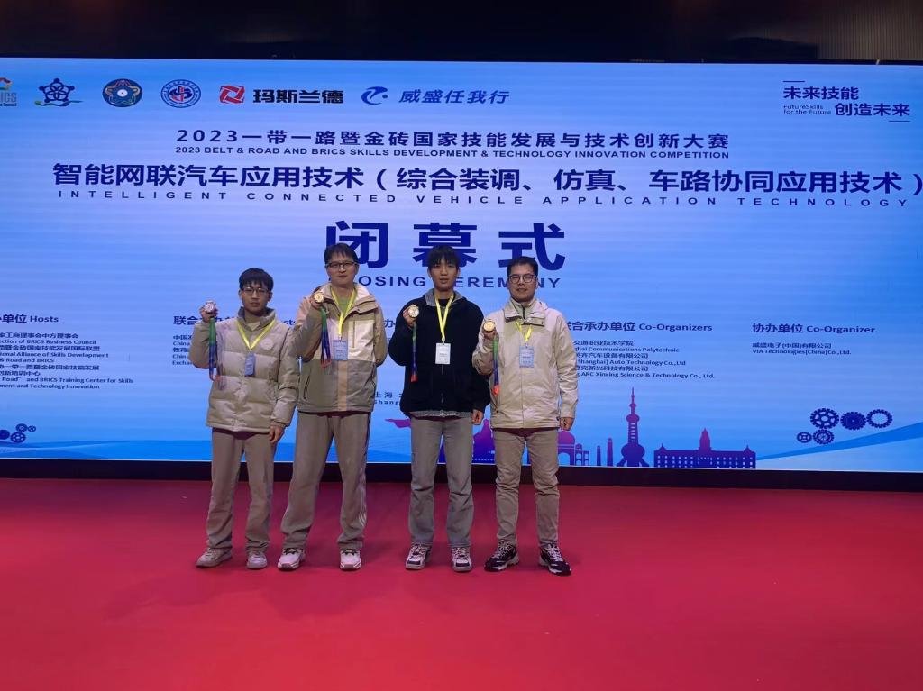 (通讯员:张超)12月14日至17日,第七届金砖国家技能发展与技术创新大赛智能网联汽车应用技术赛项在上海交通职业技术公司举行。经过激烈比拼,公司伟德国际victor1946张超、陈高峰组成的教师代表队以职工组总分第一的成绩力夺金牌,李书洋、綦凌组成的员工代表队在高职组喜获银牌。
