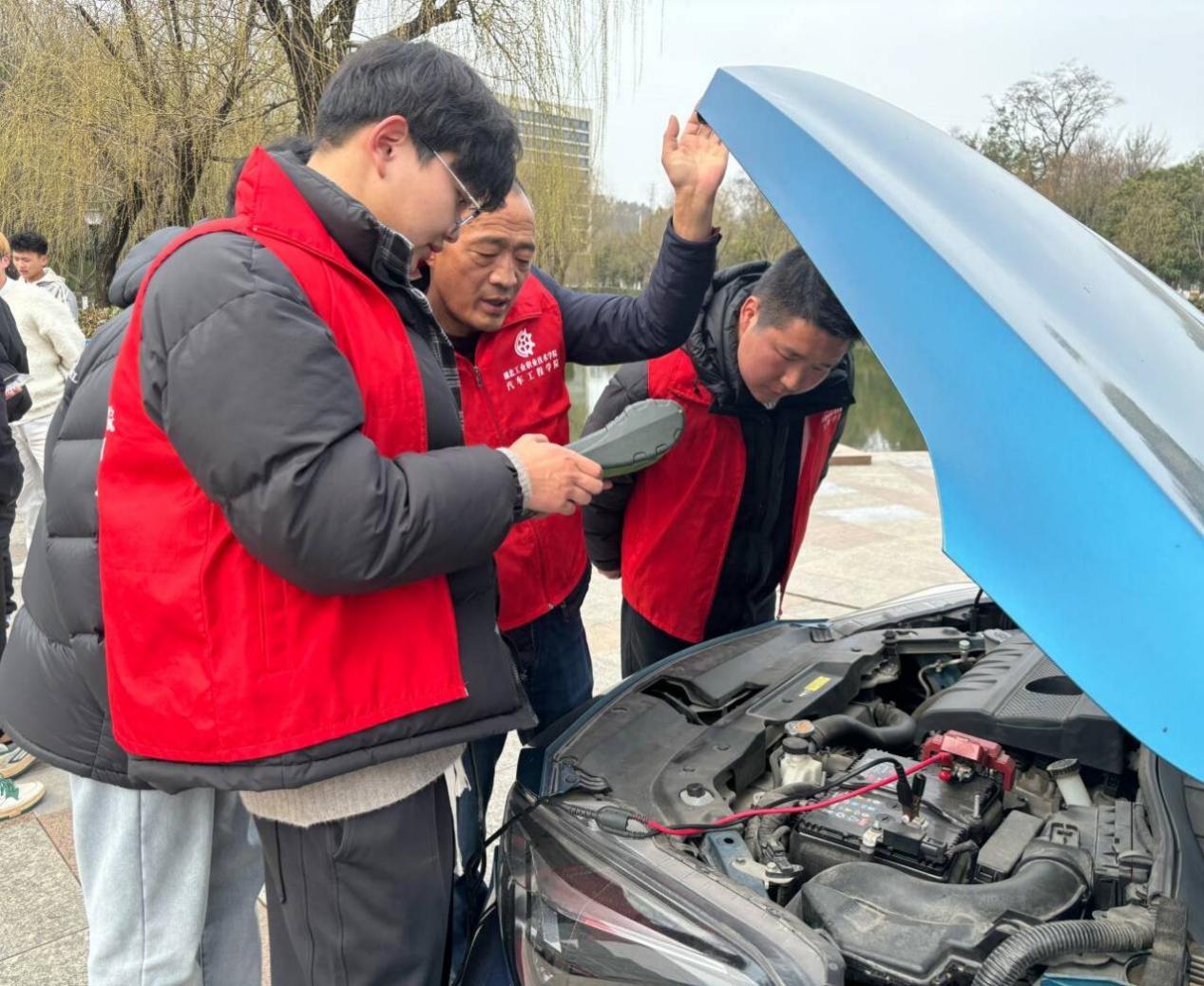 在校园慧智广场上的志愿服务公益集市中,十余名“飞驰青春”志愿服务队的同学在刘德涛老师的指导下进行车辆检测项目展示,对汽车发动机、蓄电池健康状况和车轮轮胎安全状态进行检查,为公司老师提供爱车“体检”和预约洗车登记服务,并于3月7日和8日义务帮助老师们清洗了车辆。实训车间内,员工会干事们对实训车辆、台架、桌椅、门窗、地面及车间周边环境进行了深度清洁整理。经过同学们的共同努力,实训车间及周边呈现出干净整洁的崭新面貌,营造了良好的教学环境。