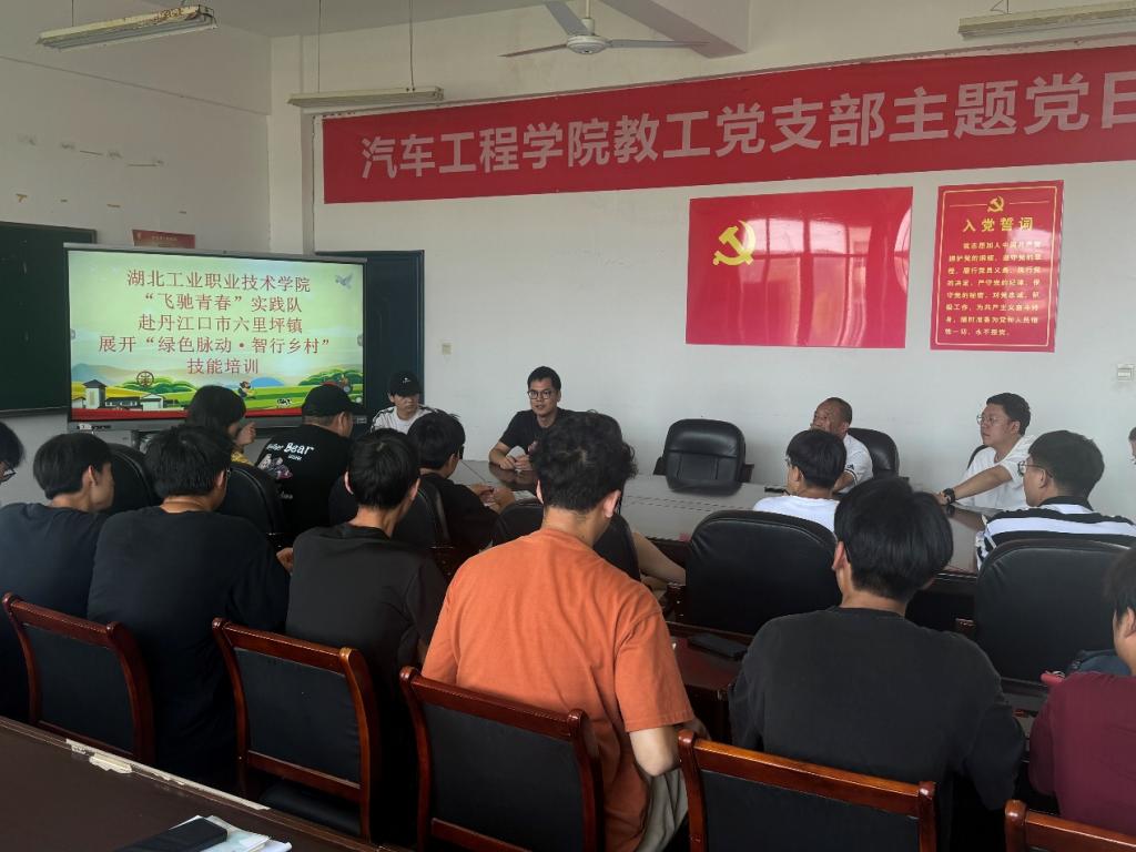 活动前期,实践团队通过走访调研了解六里坪村村民实际需求,邀请全国劳模王涛教授、车城工匠刘德涛老师、新能源汽车技术专业主任陈高峰老师担任技术指导,对同学们开展了一系列关于电动车维保、电池检测、新能源汽车基础维修方面的技能培训,并针对村民提出的电动车维修、电池使用问题进行了答疑解惑。