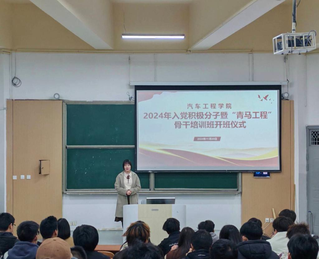 (通讯员:张领)为深入学习贯彻党的二十届三中全会精神和习近平总书记关于青年工作的重要思想,加强对入党积极分子、团员发展对象和团学干部的培养教育,伟德国际victor1946入党积极分子暨“青马工程”培训班开班仪式于11月20日晚在5209教室举行。汽车工程公司党总支书记李霞、副书记李路、分团委书记曲杉和77名学员参加活动,2023级辅导员张领担任主持。