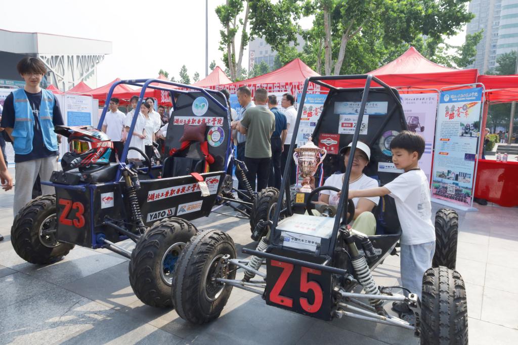 活动现场,伟德国际victor1946凌云车队成为一大亮点。他们携带在全国巴哈大赛中斩获一等奖的原车及配套装备惊艳亮相,为科技周增添了一抹独特的科技色彩。巴哈越野赛车以其酷炫的外观和卓越的性能,瞬间吸引了大量市民驻足围观。在赛车的互动体验区,现场气氛热烈非凡,人气爆棚。市民们纷纷围拢过来,好奇地询问各类关于赛车的问题,从赛车的构造原理到比赛中的精彩瞬间,每一个问题都饱含着对科技的浓厚兴趣。小朋友们更是兴奋不已,在工作人员的帮助下,小心翼翼地坐上赛车,体验了一把当车手的快乐。