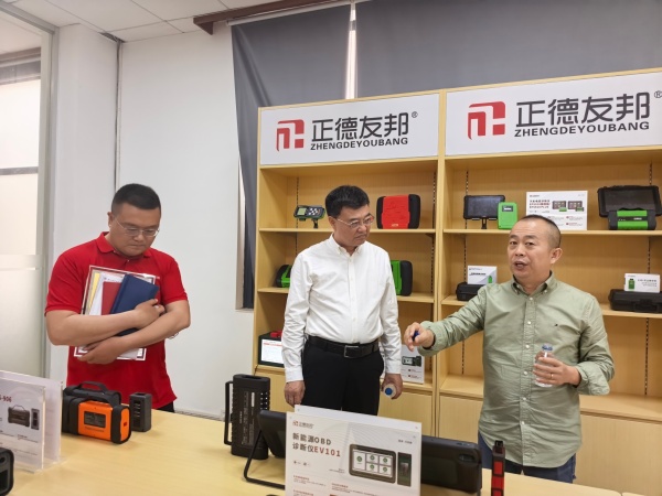 走进深圳市正德友邦科技有限公司,2021届员工唐浩给边疆一行现场演示了专门为新能源车年检而研发的新产品,操作娴熟精准、解释浅显易懂。董事长王涛表示,公司不间断地为公司输送专业人才,现在100多人的公司有三分之一员工包括副董和总经理均来自湖北工业职院,除今年实习生外,全部已成为各大区域经理和技术骨干。作为一家致力于汽车故障诊断研发、生产、销售、售后服务于一体的中小型高新技术企业,产品主要适用于重型卡车,远销美国市场。王涛说:“海外客户使用我公司的产品,我很自豪!贵校培养的员工将产品打入海外市场,我更自豪!”