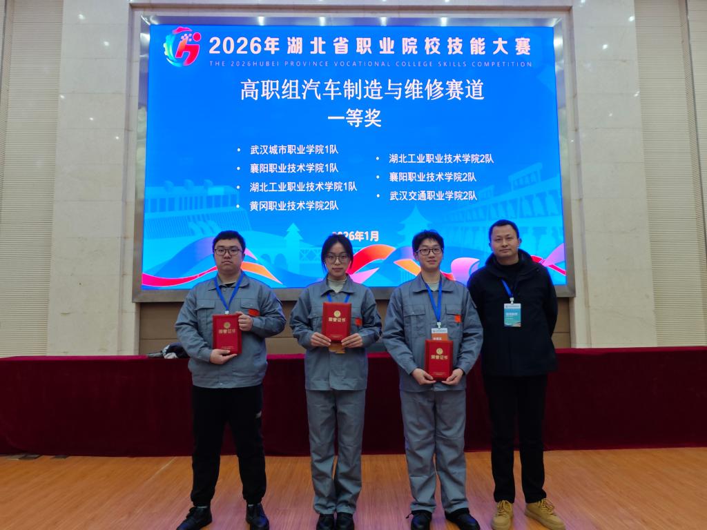 (通讯员 赵艳杰)1月21日,2026年湖北省职业院校技能大赛圆满落幕。公司伟德国际victor1946师生凭借扎实过硬的专业功底、沉着冷静的临场应变能力与默契高效的团队协作,在众多参赛团队中脱颖而出,共斩获一等奖4项、二等奖1项、三等奖1项,成功实现“全员参赛、全员获奖、全面丰收”的优异成绩。