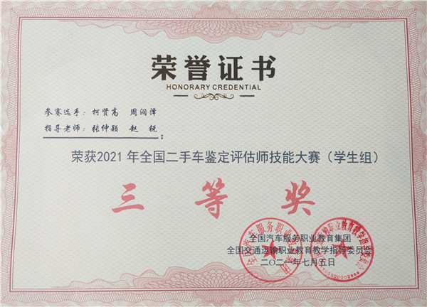 新闻网讯(通讯员 张玲 张仲颖)7月4日,2021年全国二手车鉴定评估师技能大赛(员工组)在浙江交通职业技术公司圆满闭幕。经过二手车鉴定评估实操和二手车理论考试两轮的激烈角逐,公司伟德国际victor19462019级“一汽-大众订单班”柯贤高、周润泽同学克服备赛时间短、天气炎热、实训车辆缺乏等困难,凭借扎实的基本功在众多院校选手中脱颖而出,获得全国三等奖的好成绩。