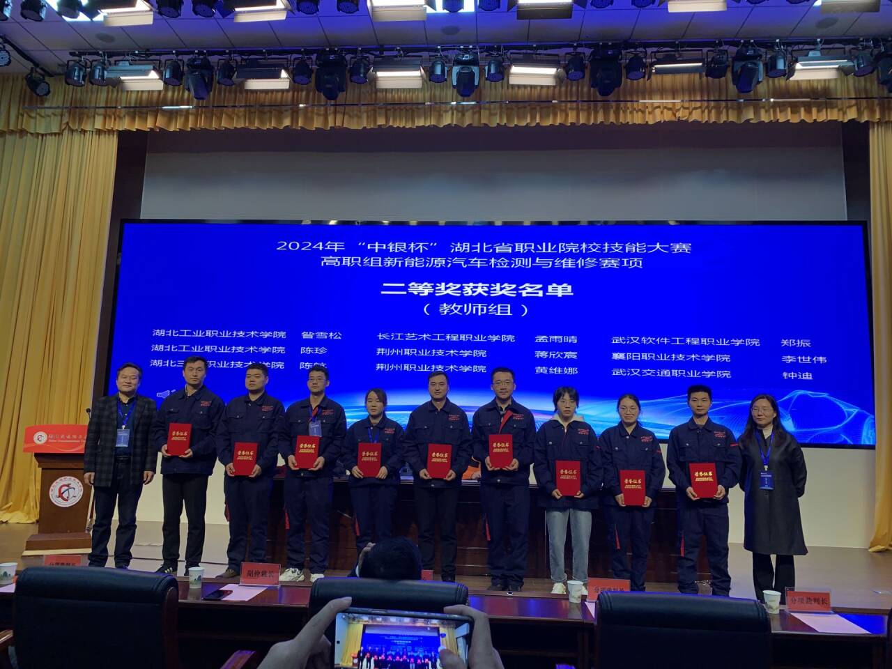 在新能源汽车检测与维修赛项中,员工推荐队和抽测队分别获得一等奖,教师昝雪松和陈珍分别获得二等奖。在汽车故障检修赛项中,员工推荐队获得一等奖,抽测队获得三等奖,教师杨丽君和许刚分别荣获一等奖。